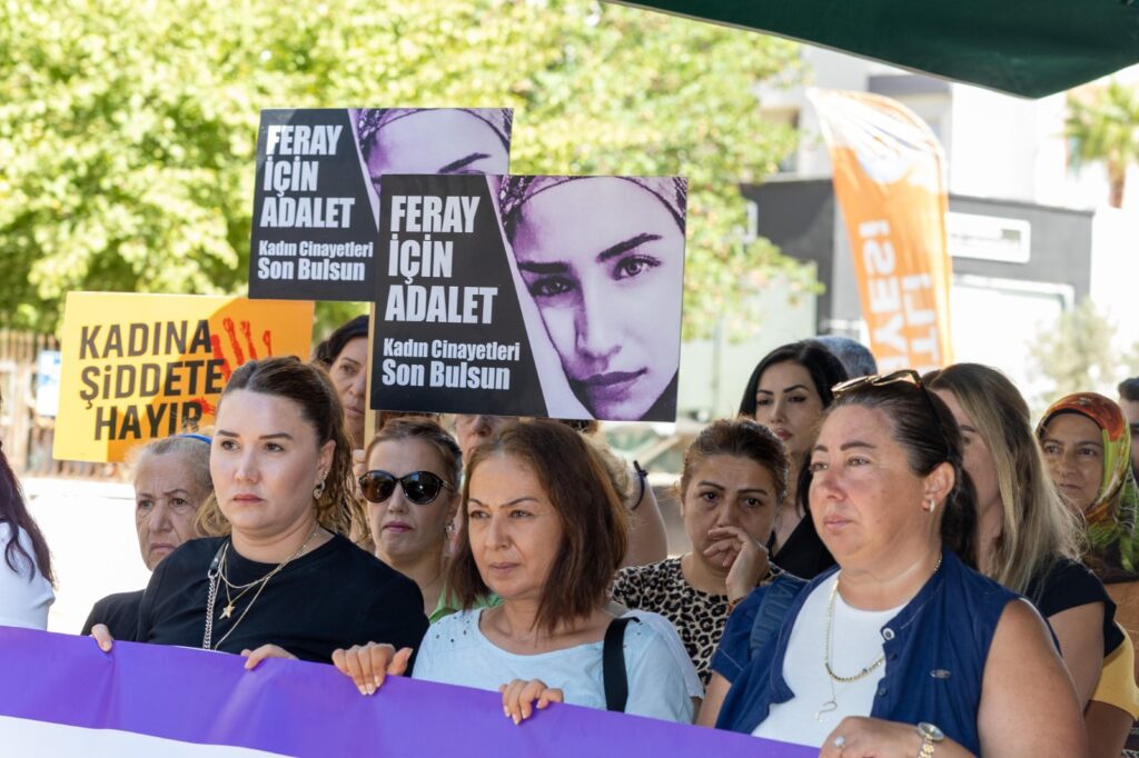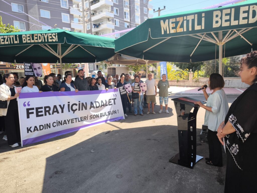 Etkinlikte hem Feray Şahin’in anısı yaşatıldı hem de kadın cinayetlerinde adaletin sağlanamamasına karşı tepkiler dile getirildi.