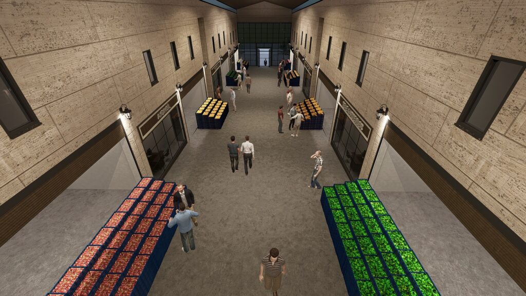 Sebze halinde satış ve sergi koridorları ayrıştırılarak genişletildi. Bu düzenleme ile hem yaya hem de yük trafiğinin daha düzenli ilerlemesi hedefleniyor. İş yeri cepheleri aynı anda birden fazla tıra hizmet verecek şekilde geniş planlandı. Hal giriş kapısı ise toplu giriş ve çıkışlara uygun şekilde tasarlandı.